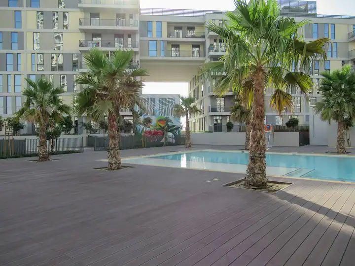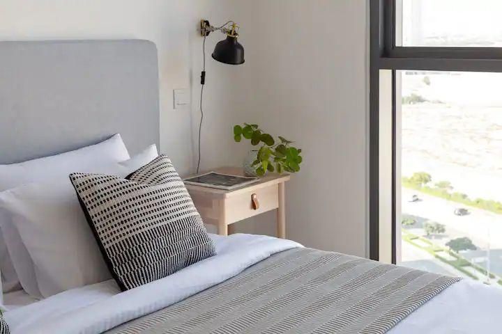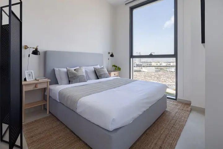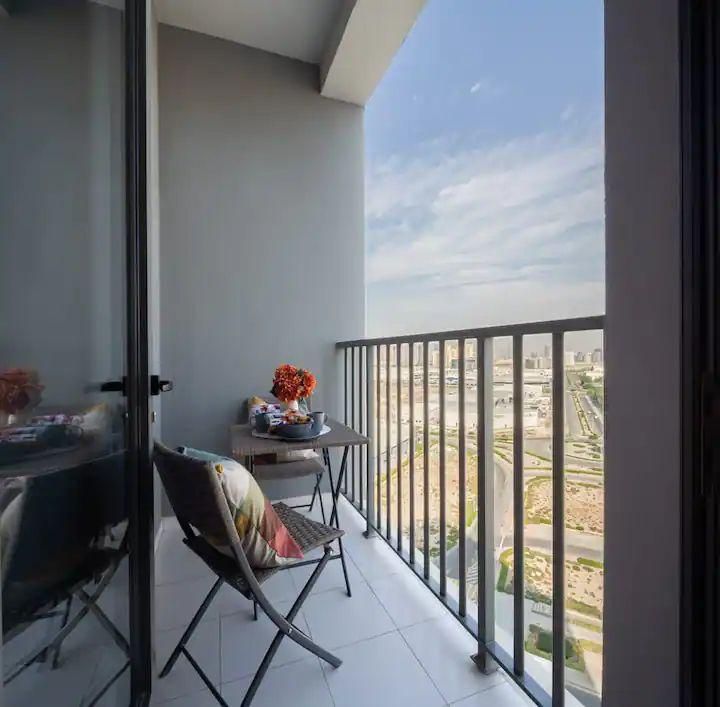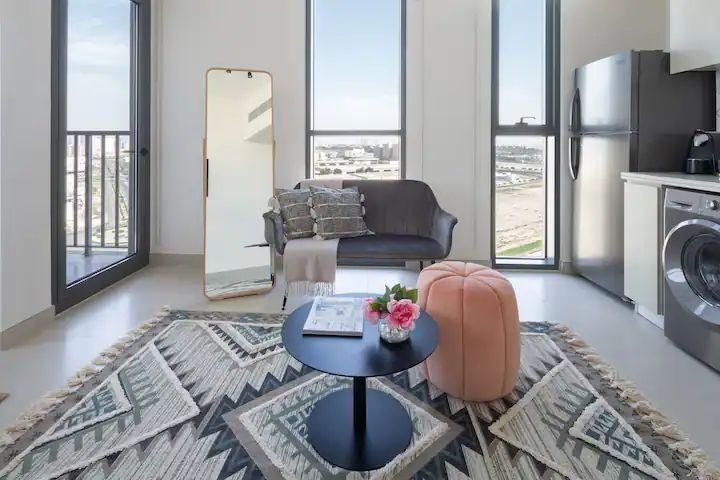 The studio apartments in Dania 2 offer a spacious 427 sq. ft. of thoughtfully designed living space. These units feature an open-style, fully fitted kitchen and a modern bathroom with high-quality fixtures. The living area opens up to a private balcony, offering a serene outdoor space with stunning views. The apartments boast elegant marble flooring and exquisite finishes throughout.